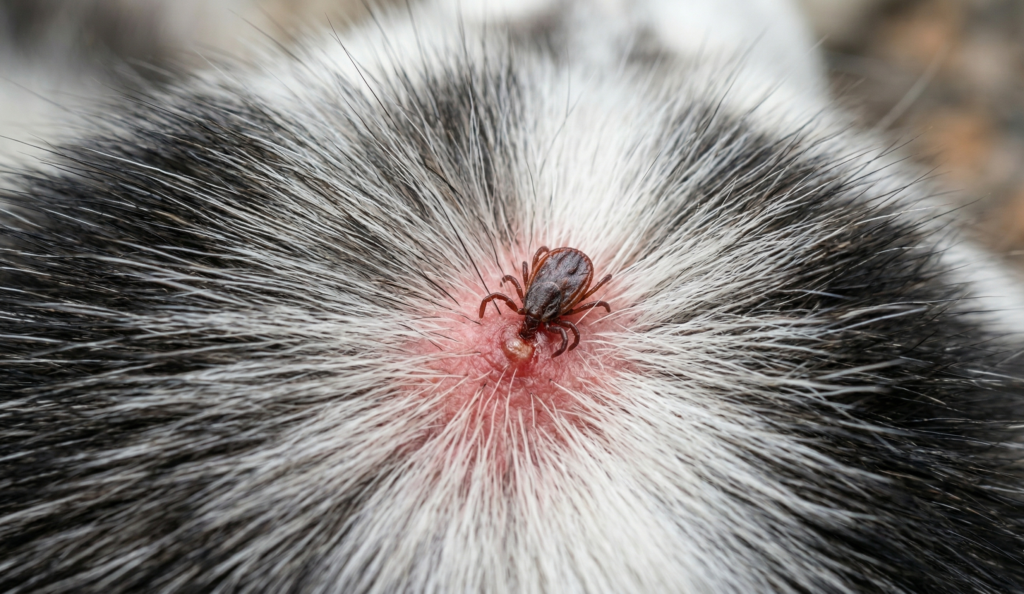 O Perigo: Se você puxar um carrapato à força, o corpo dele rompe-se, mas o aparelho bucal (as quelíceras) fica preso dentro da pele do seu cão, causando inflamações terríveis, granulomas e até infecções secundárias. Além disso, ao “espremer” o carrapato com os dedos, você age como uma seringa, empurrando toda a saliva contaminada dele diretamente para a veia do cachorro.